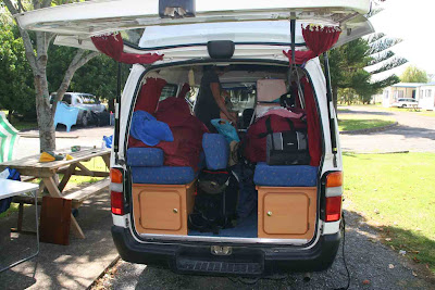 Hot Water Beach auf der Coromandel Peninsula - Eigentlich könnte man ne Schaufel im Kiosk mieten und ein Loch in den Sand graben und sich ins heisse Wasser setzen... aber natürlich nur bei Ebbe. Leider war die Ebbe erst gegen Abend angesagt... Nichts mit "Hot Water" Sitzbad.